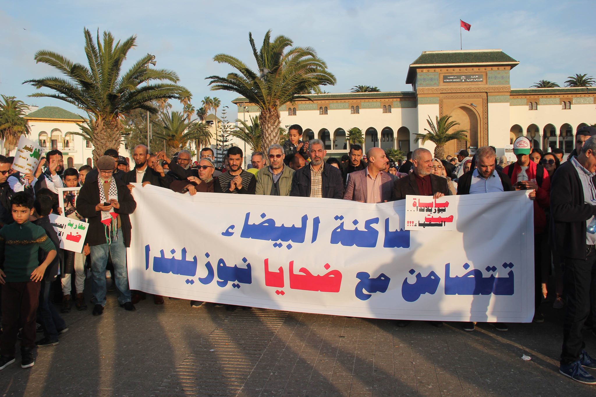نظمت الهيئة المغربية لنصرة قضايا الأمة، مساء امس السبت 16 مارس الجاري، وقفة احتجاجية بساحة محمد الخامس بالدار البيضاء ، للتنديد بالهجوم الإرهابي الدموي الذي استهدف مسجدين في نيوزيلندا.